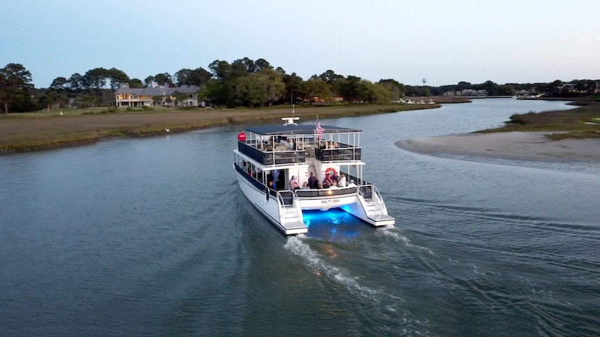 beverages and food. Happy Hour cruises feature a ride around the Calibogue Sound, an island-inspired food and beverage